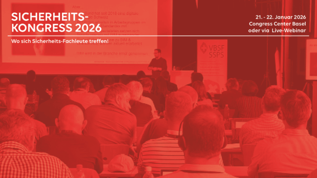 Vom 21. bis 22. Januar 2026 findet parallel zur Messe Swissbau der renommierte SICHERHEITS-Kongress in Basel statt. In vier spannenden Halbtagesmodulen werden aktuelle Herausforderungen zum Thema Sicherheit behandelt.